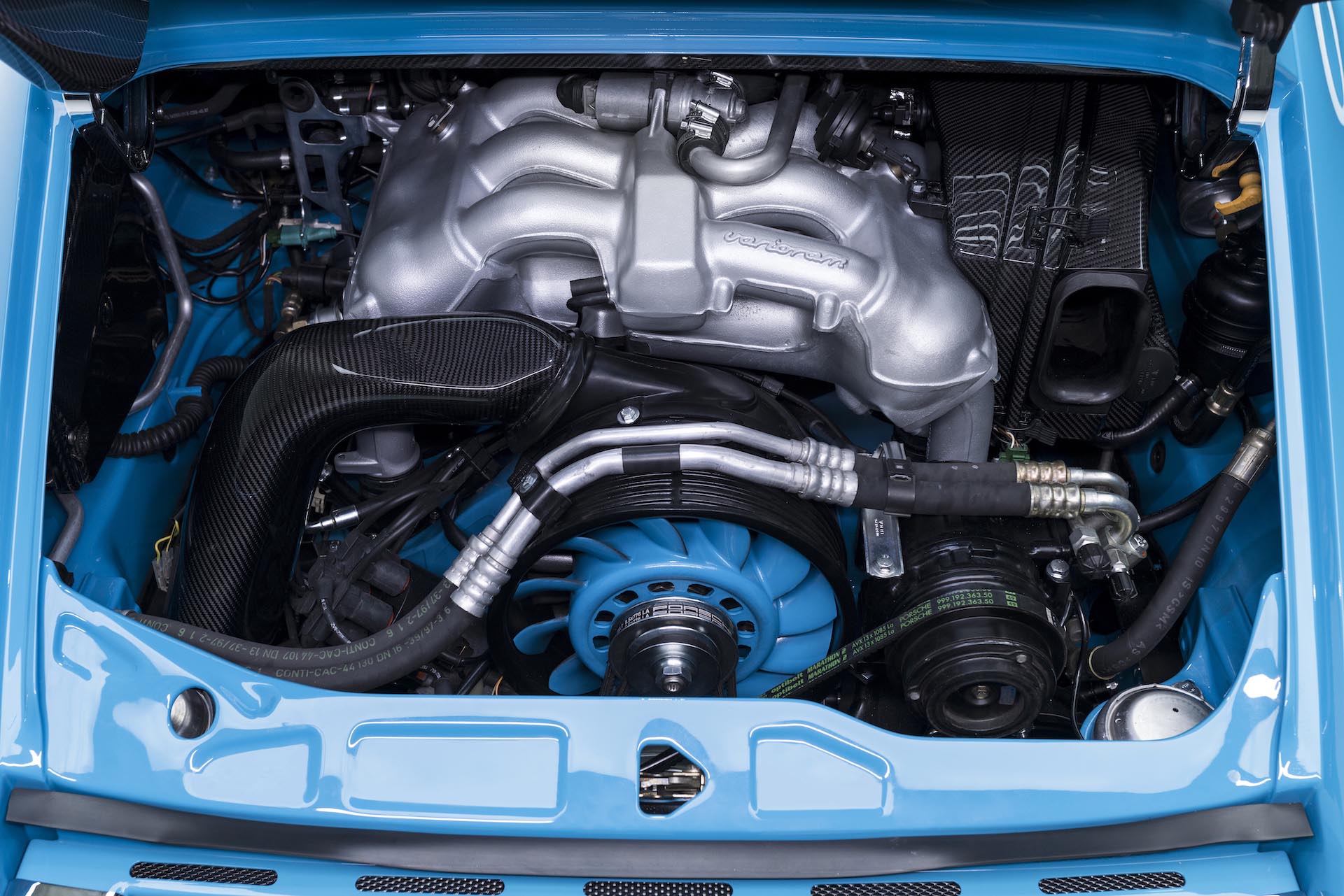 Durch die Verwendung von Carbonbauteilen haben wir die authentische Wirkung nicht nur um moderne Komponenten ergänzt, sondern gegenüber dem originalen 993 auch eine Gewichtsersparnis von über 150 Kilogramm erreicht. Zeitgemäße Leichtbauweise, die sich im Fahrzeughandling und im Verbrauch stark bemerkbar macht.