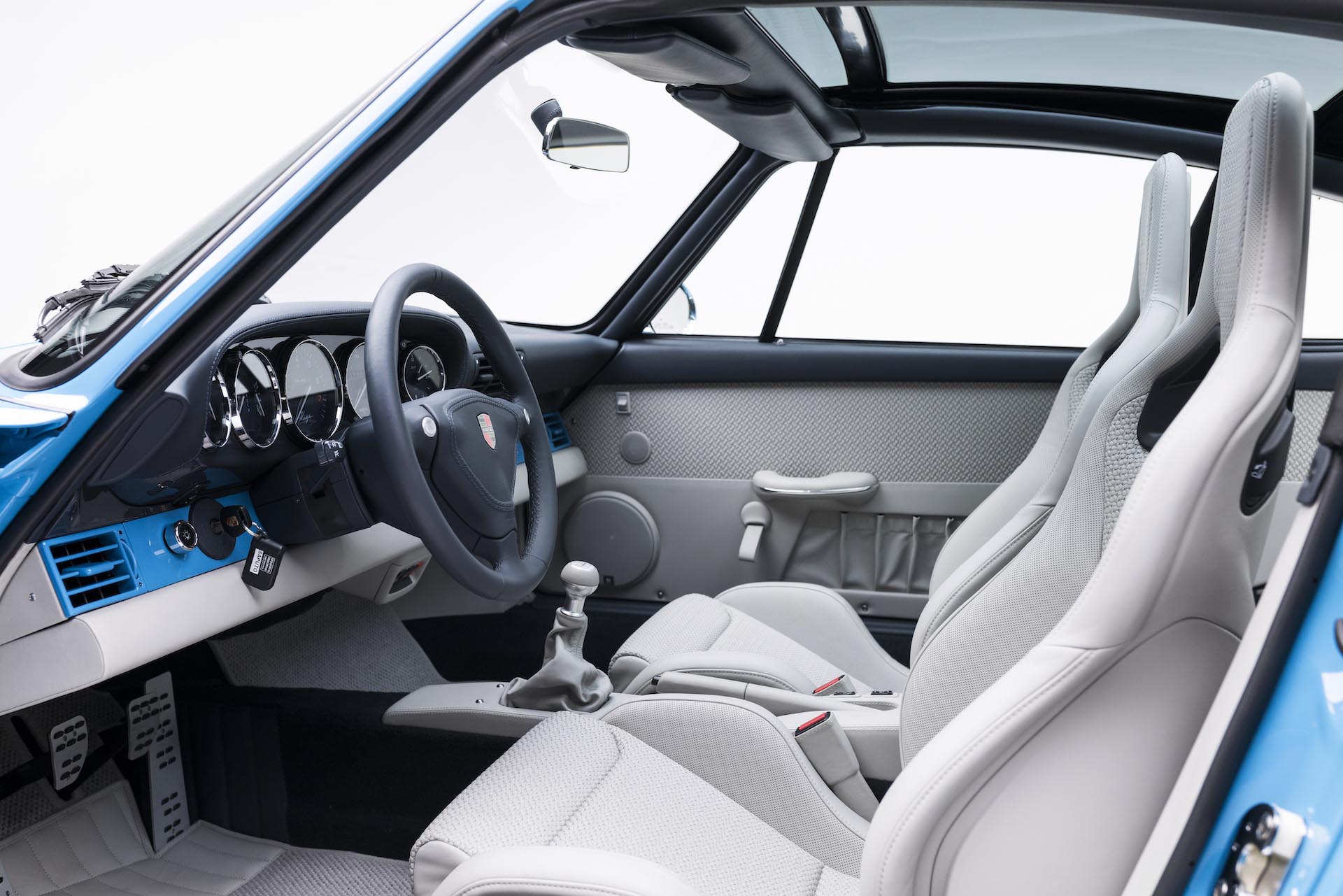 Über die Segnungen der Neuzeit waren wir beim 993 besonders froh: Anders als das F-Modell verfügt er serienmäßig über eine Klimaanlage. Komplett überholt sorgt sie nun im RETRO – zusammen mit elektrisch bedienbaren Glasdach – für Begeisterung und stets optimale Temperatur.